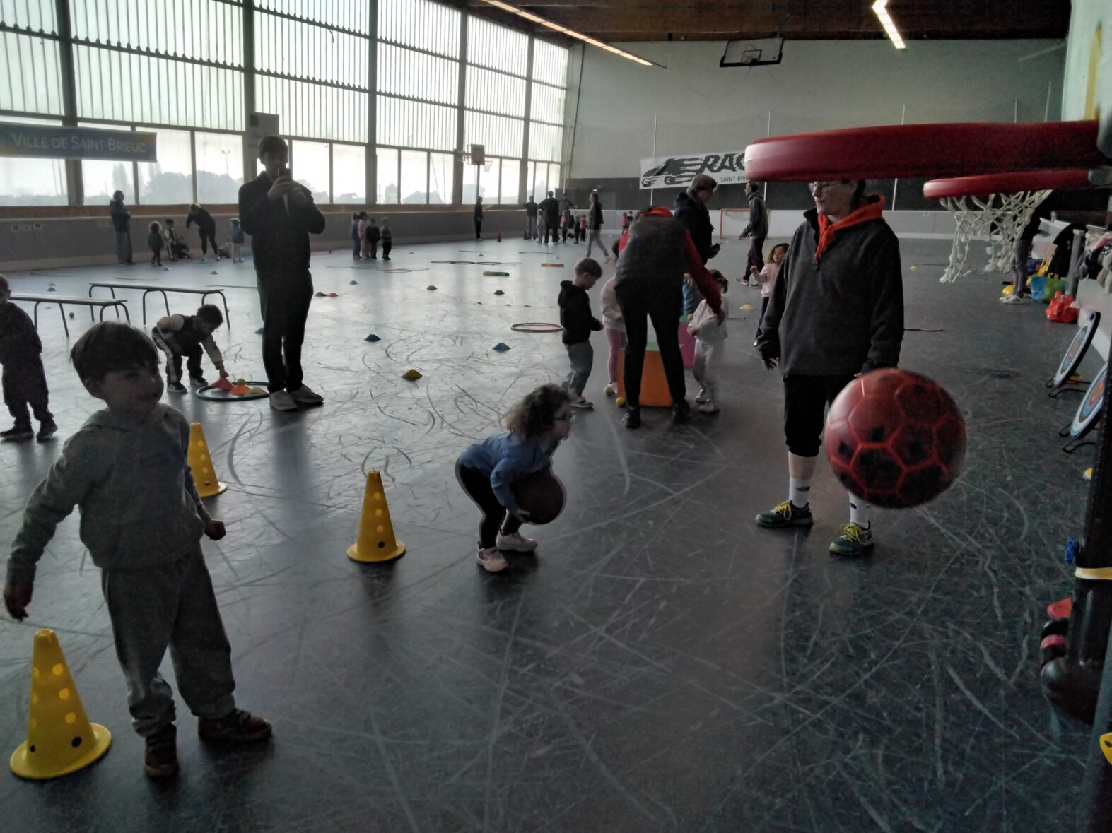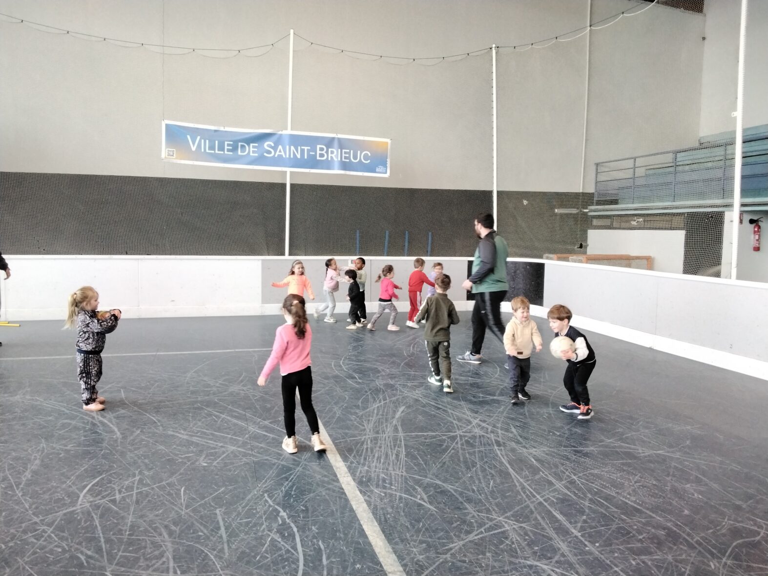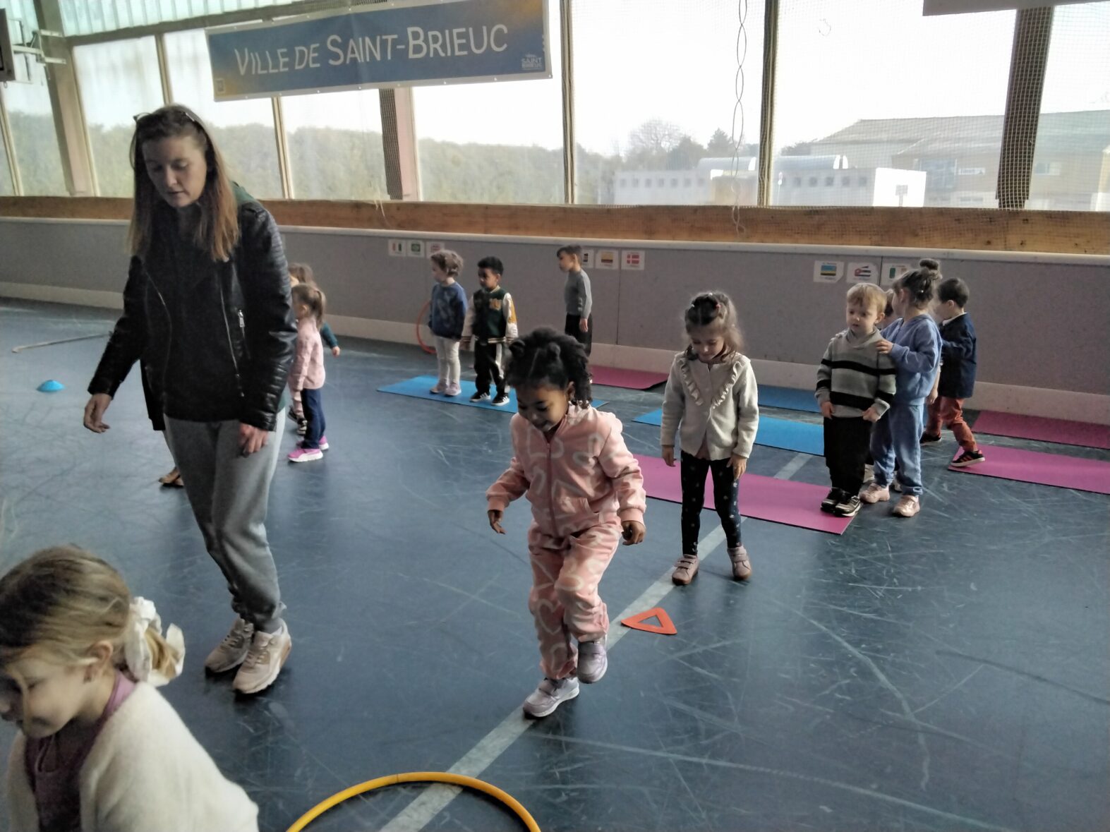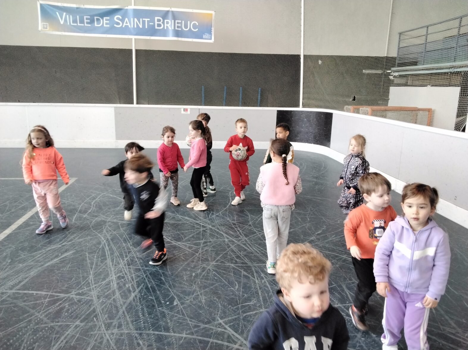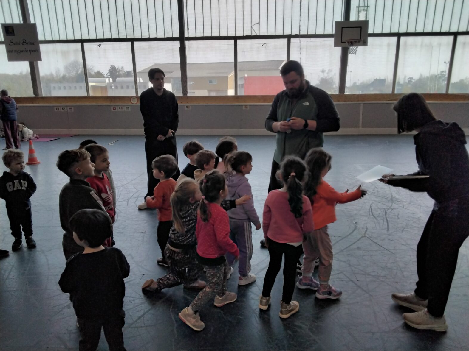 Ce lundi 23 mars, les 2 classes de TPS/PS et de PS/MS se sont rendues en car pour une animation sportive à l’ASPTT de PLérin.