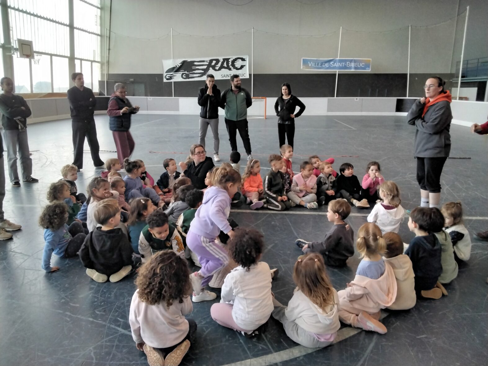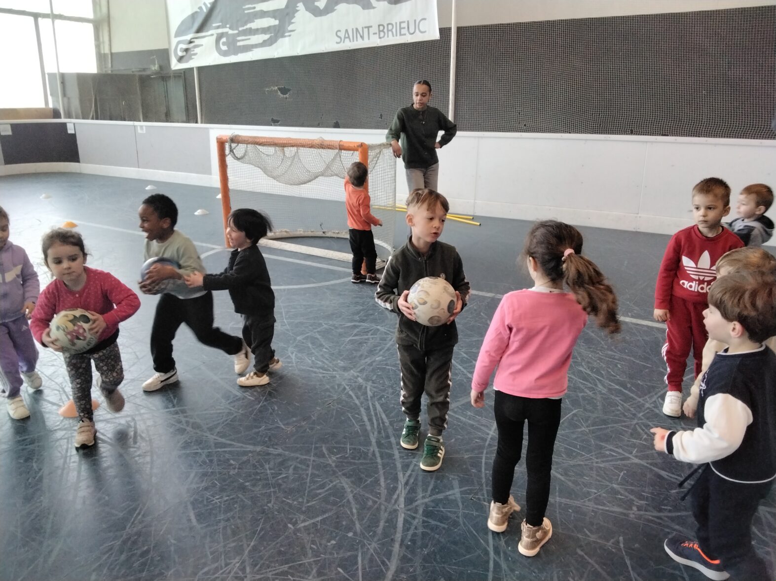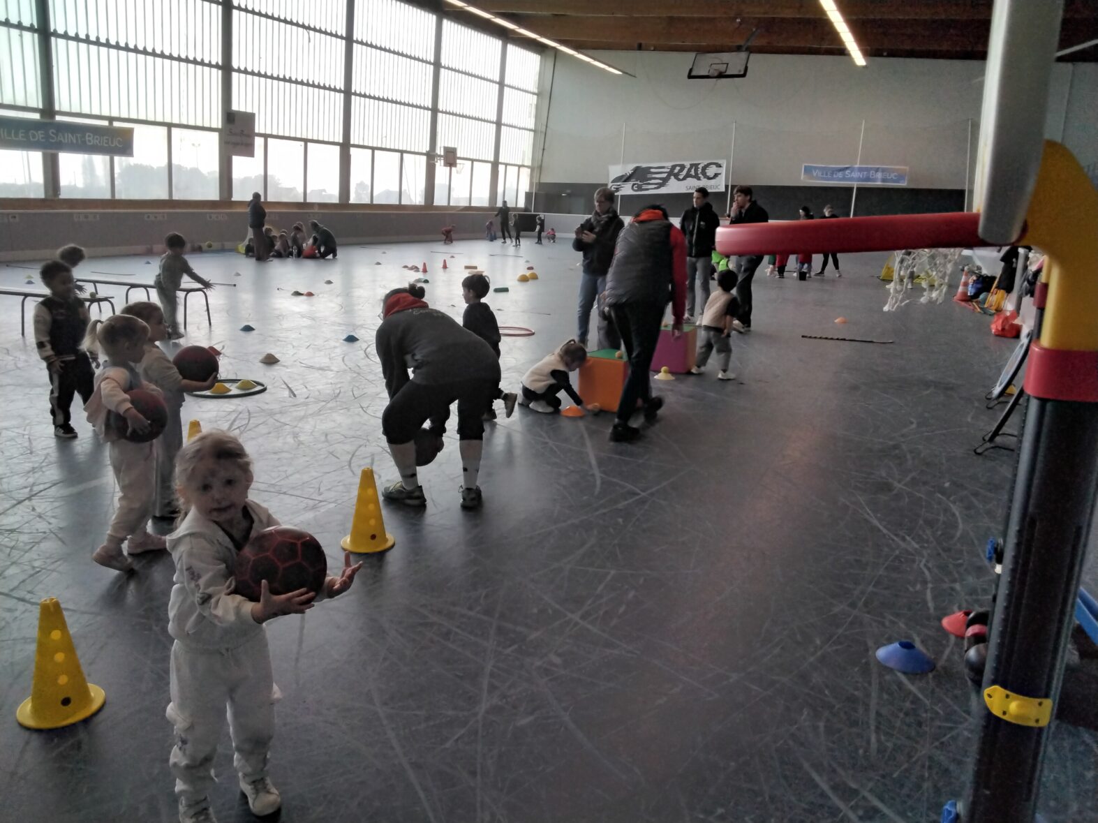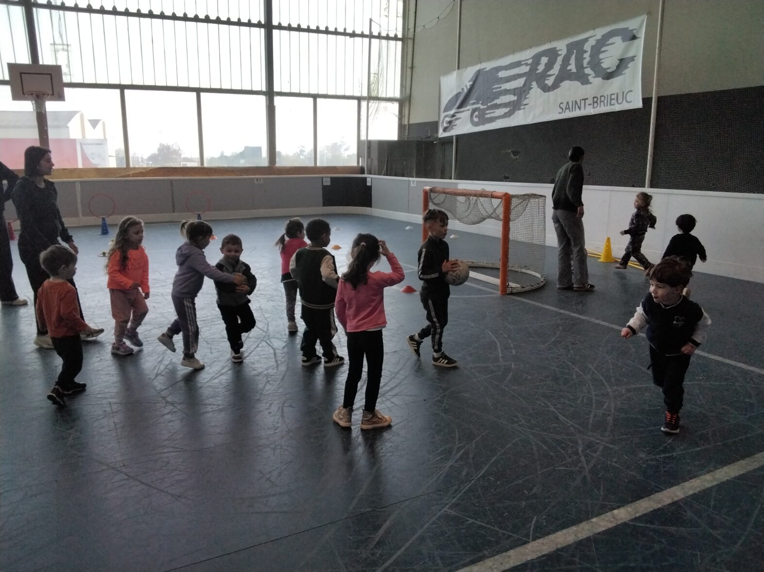 Ce lundi 23 mars, les 2 classes de TPS/PS et de PS/MS se sont rendues en car pour une animation sportive à l’ASPTT de PLérin.
