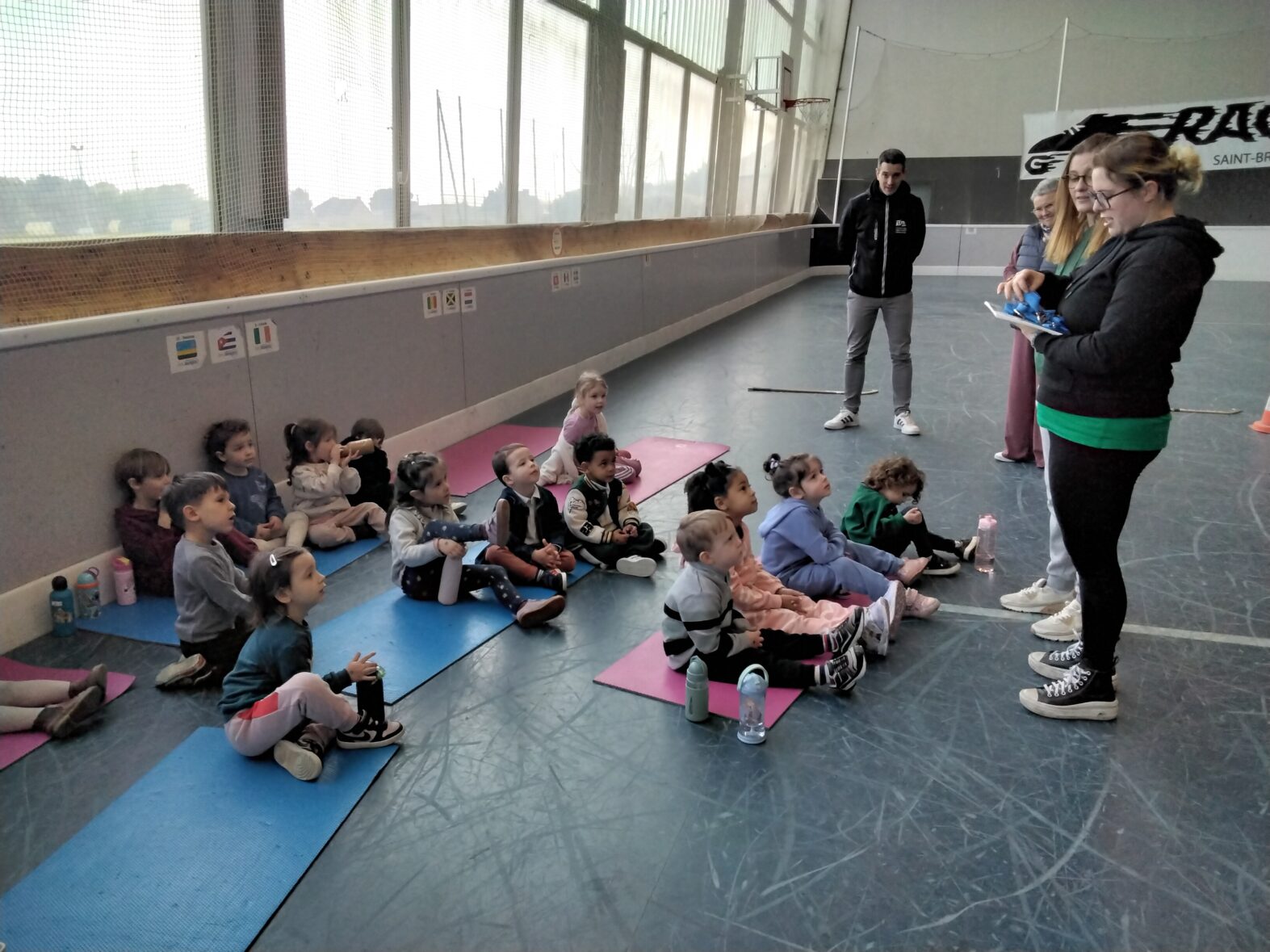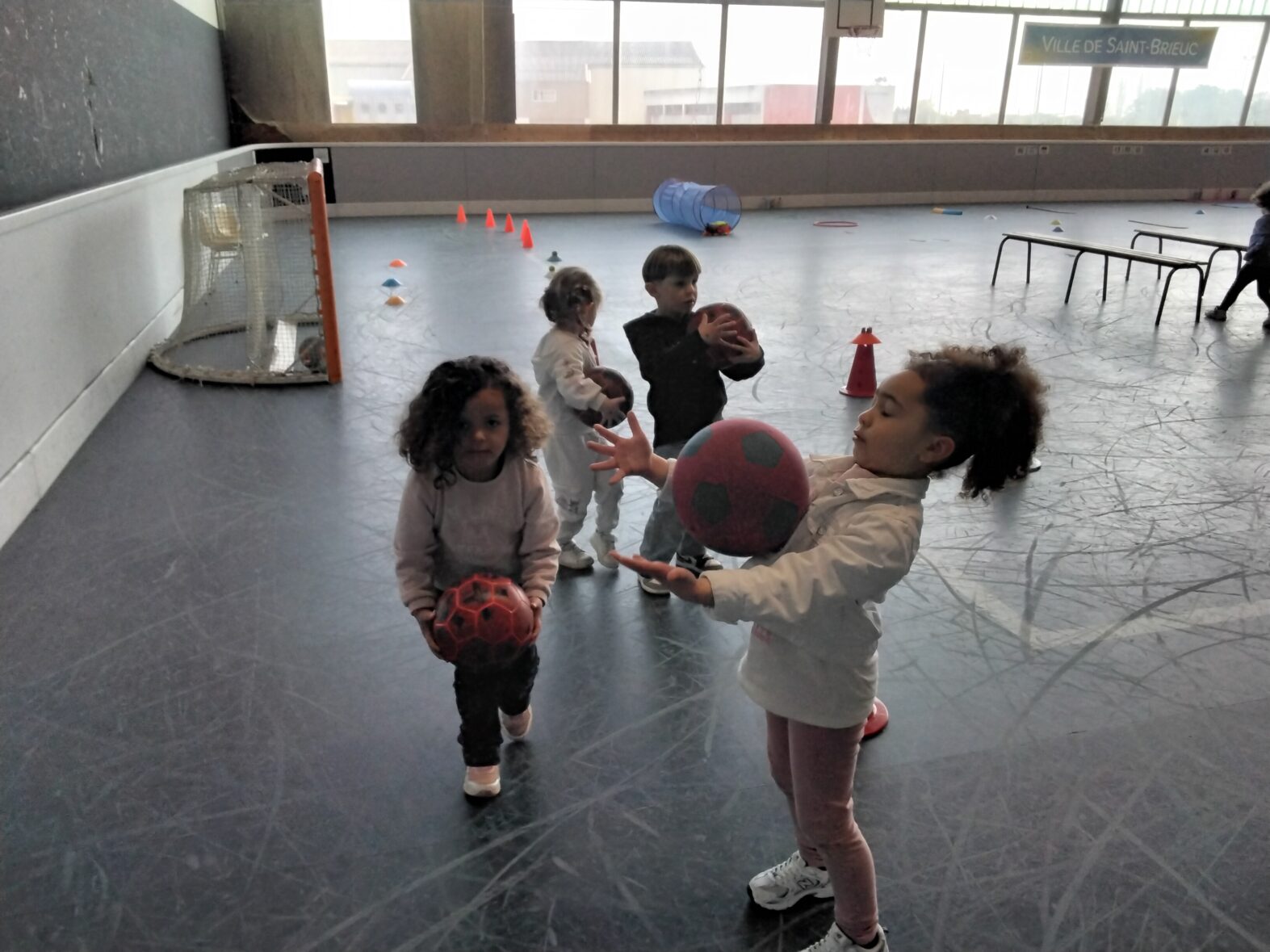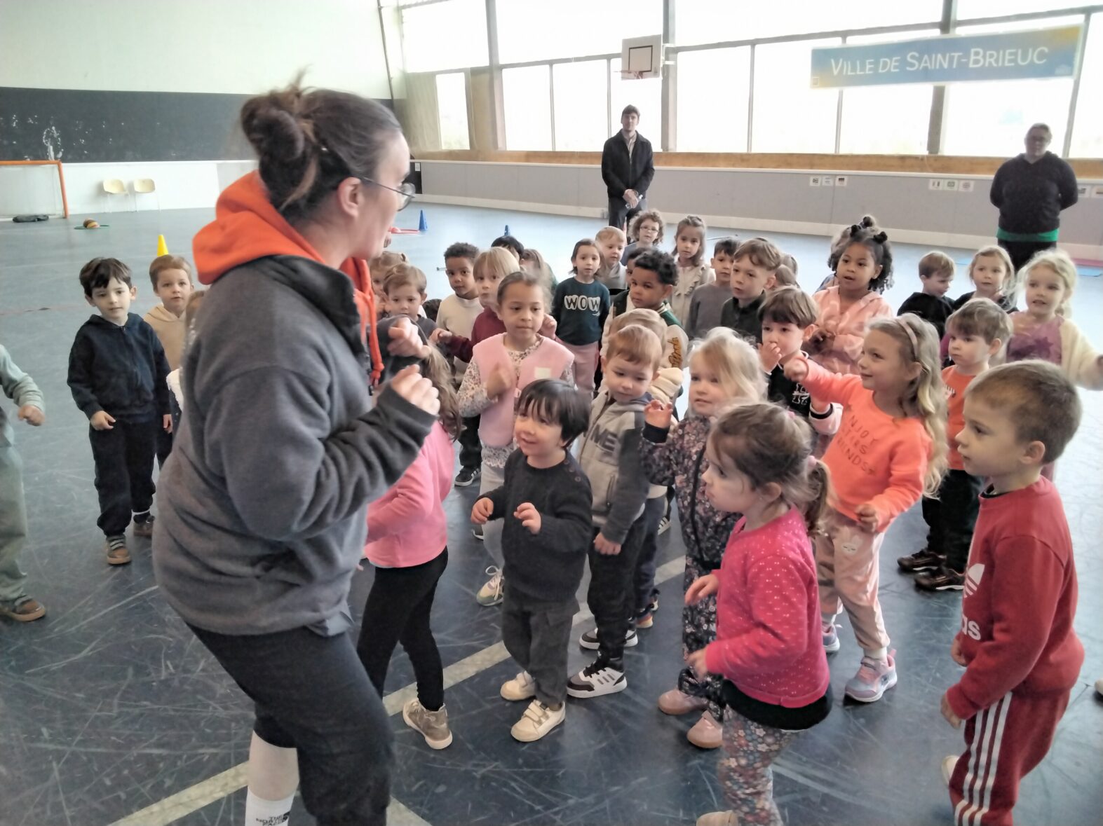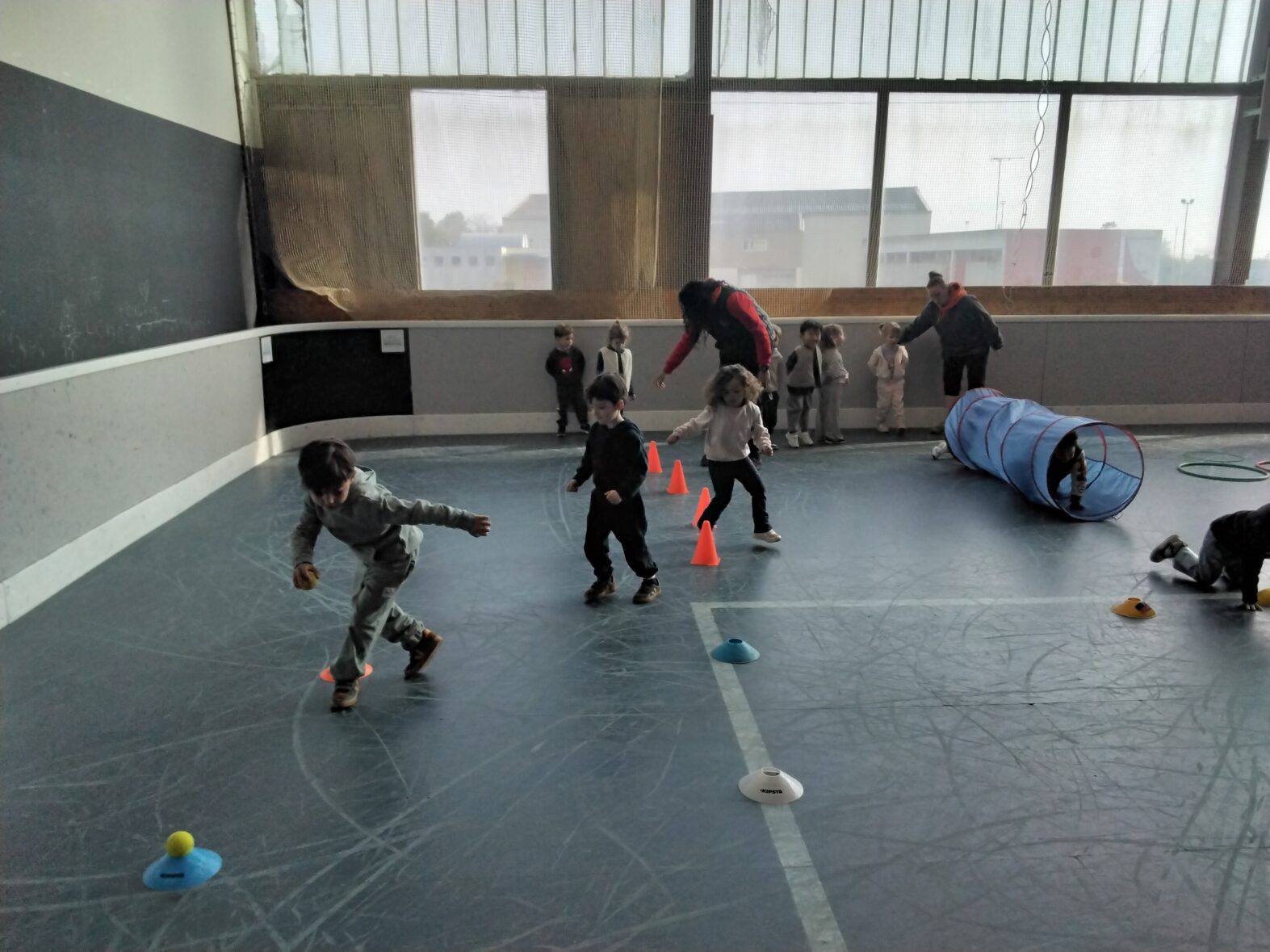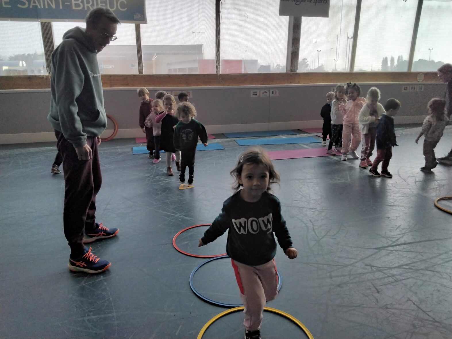 Ce lundi 23 mars, les 2 classes de TPS/PS et de PS/MS se sont rendues en car pour une animation sportive à l’ASPTT de PLérin.