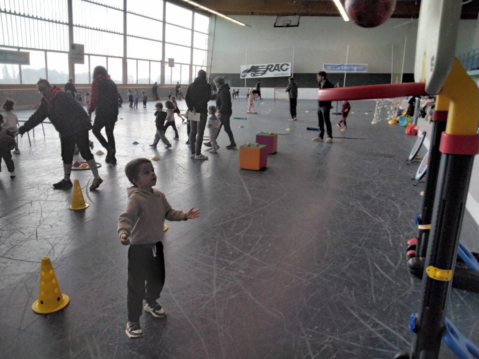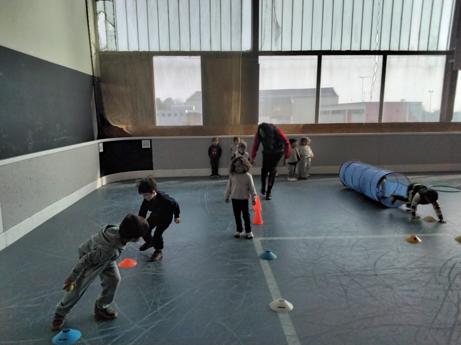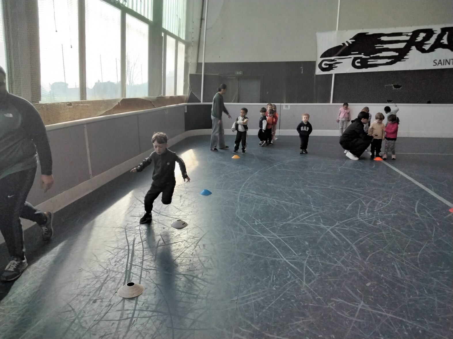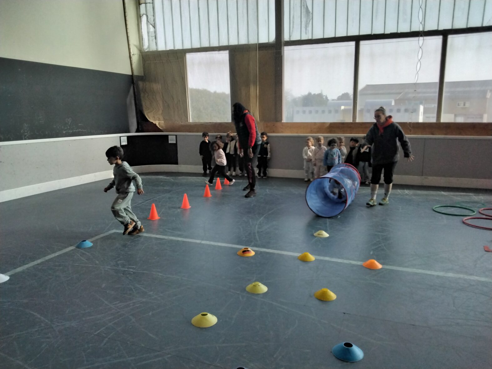 Ce lundi 23 mars, les 2 classes de TPS/PS et de PS/MS se sont rendues en car pour une animation sportive à l’ASPTT de PLérin.