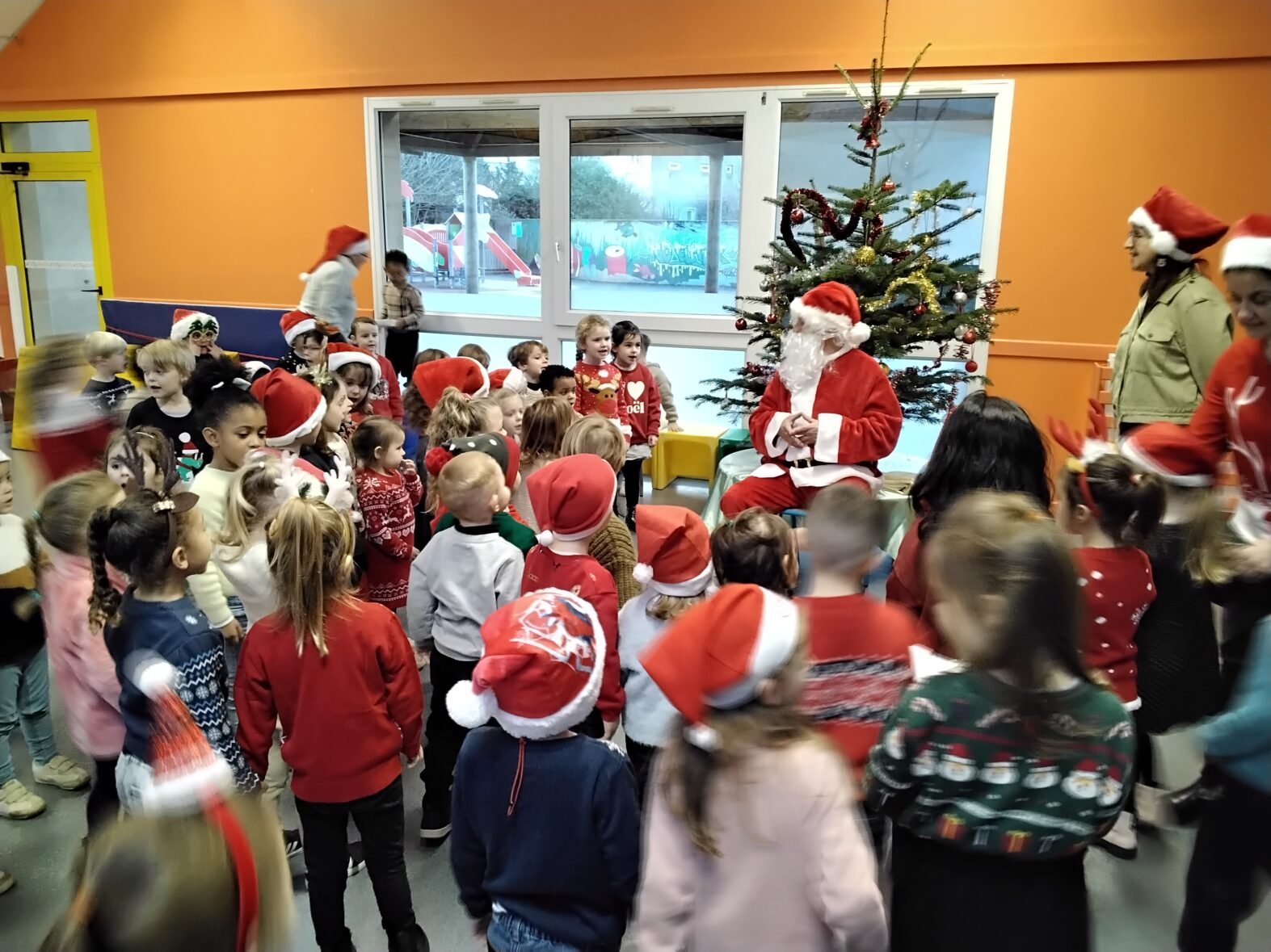 Ce matin, vendredi 19 décembre, le Père-Noël est venu nous faire une belle surprise à l’école !