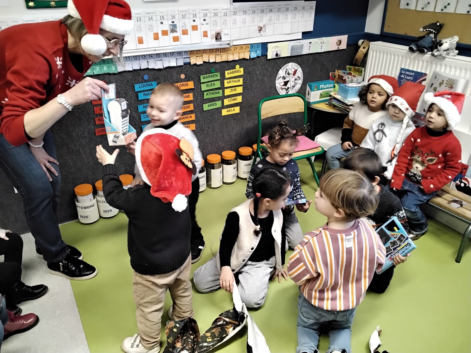Il a distribué des cadeaux dans toutes les classes pour le plus grand bonheur des enfants.