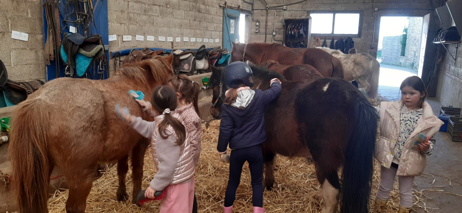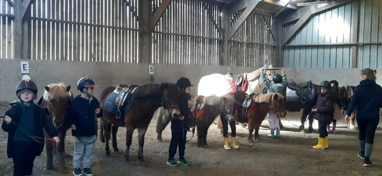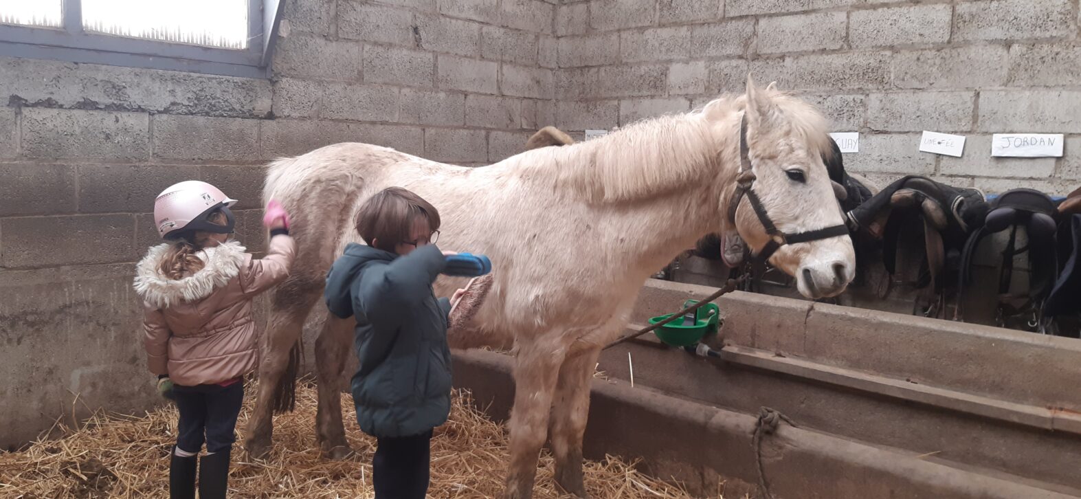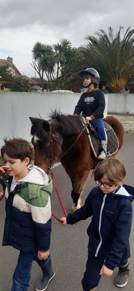 Tous au poney club durant cette période printanière. Les élèves de CP ont profité de 3 séances de poney au centre équestre Pony-Express de Plérin. Découverte des soins, du pansage, de l’alimentation et surtout monter, diriger, tenir en équilibre, marcher et trotter. La dernière séance, ballade en binôme autour du centre et dans la campagne.